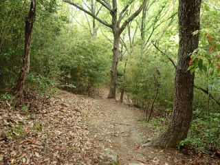| 清勝寺坂へのザレた道をを慎重に下る 9時55分:ここから一本松山に向かう | |||