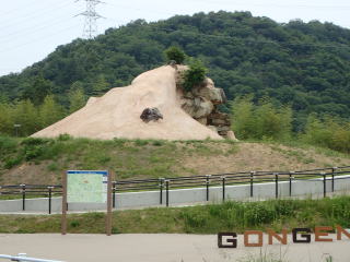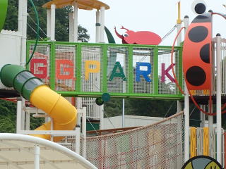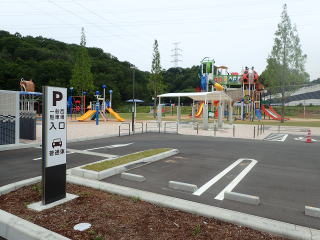 | 一般西駐車場の向こうには子供用遊具が沢山設置されている。 ここには山陽自動車道権現湖PAからもアクセスできるようだ。 |