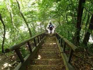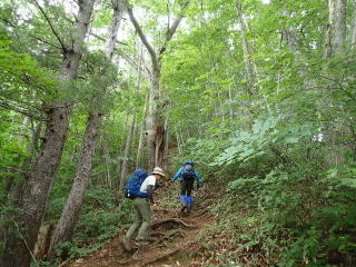 | 7時10分:滝沢登山口を出発。標高は1106m。ここから標高約1350mまでがこのルートで一番傾斜がきつい。 | |||