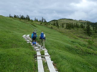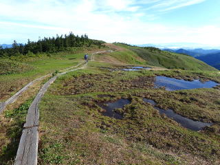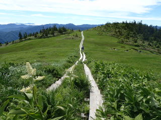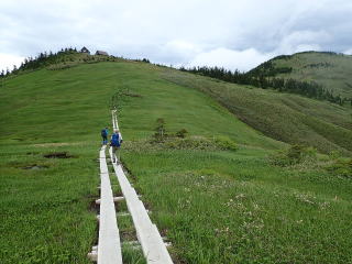 | 駒の小屋へのアプロチも大草原の気持ちのいい木道。 | |||
