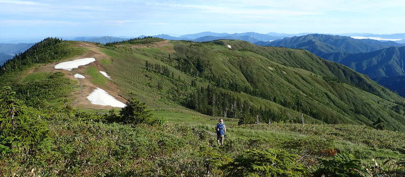 | 13年前にアイゼンをつけて登っていった雪原は、青々とした草原。 | |||