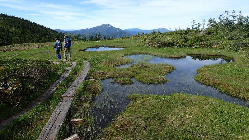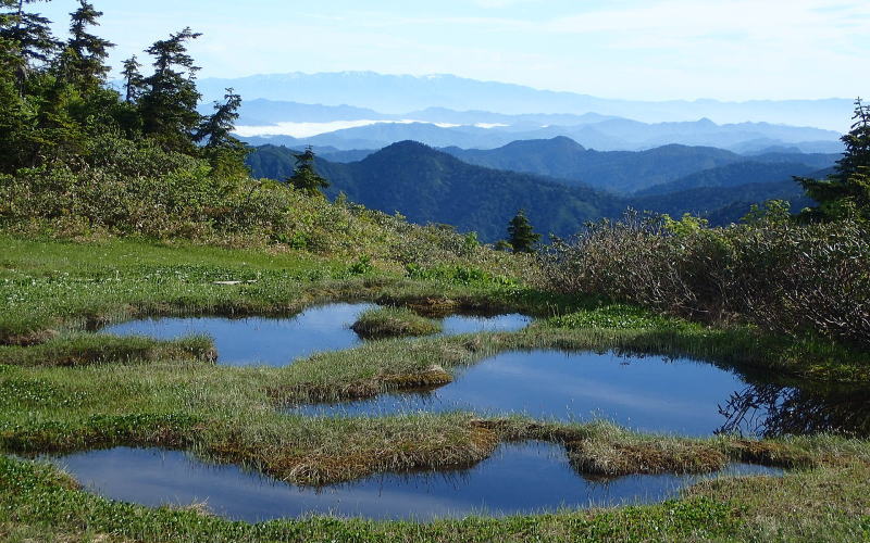 | さらに標高が上がるとシラビソ林に変わっていき、木道歩きになると視界が開けてくる。 | |||