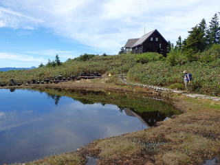 | 12時15分:駒の小屋前に到着。駒大池は思っていたより小さな池だった。これでは雪解けは遅いかな。 予定より早く到着したが、小屋にチェックインしてゆっくりとした午後を過ごした。 |