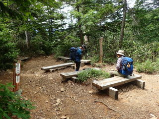 | 登るにつれて傾斜が緩み、樹林が低くなっていく。 9時:水場の休憩ポイントに到着。標高は1638m。 | |||