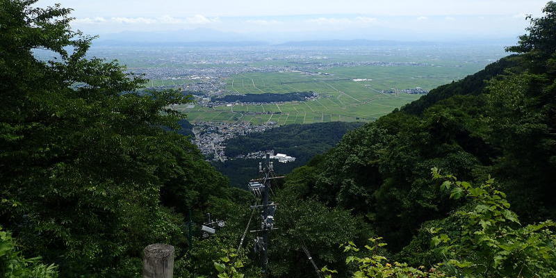 | 東側にはロープウエイのところが開けていて、その向こうには広大な越後平野が広がっていた。 | |||