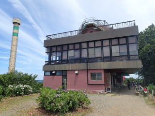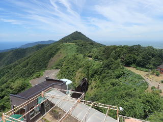 | 屋上からは、先ほど行ってきた弥彦山と、反対方向には気象レーダー観測所がある多宝山が見渡せた。 | |||
