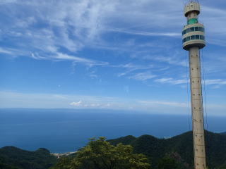 | 新潟県西蒲原郡弥彦村 ROUTE 北陸自動車道巻潟東インターから弥彦山スカイライン(無料)を走って、弥彦山パノラマタワー前駐車場(無料)へ。 クライミングカー(往復380円)に乗ると、弥彦山登山道9合目に上がる。 |