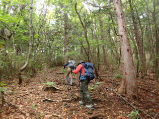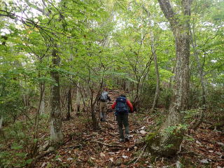 | 標高1200m辺りからは明るい落葉樹林になる。 | |||