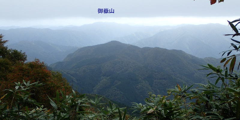 | 山頂手前で樹林が開け、右手に御嶽山が姿を現してくれた。 | |||