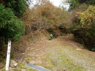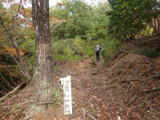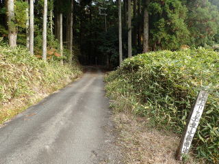 | この登山道標識のところからも登れるが、もう少し林道を歩くと登山口標識が出てくる。 | |