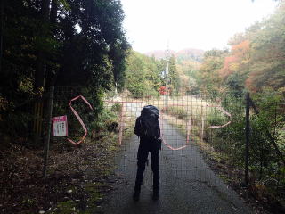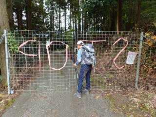 | 標識に従って林道を登っていくと、直ぐに獣除け扉。 | |