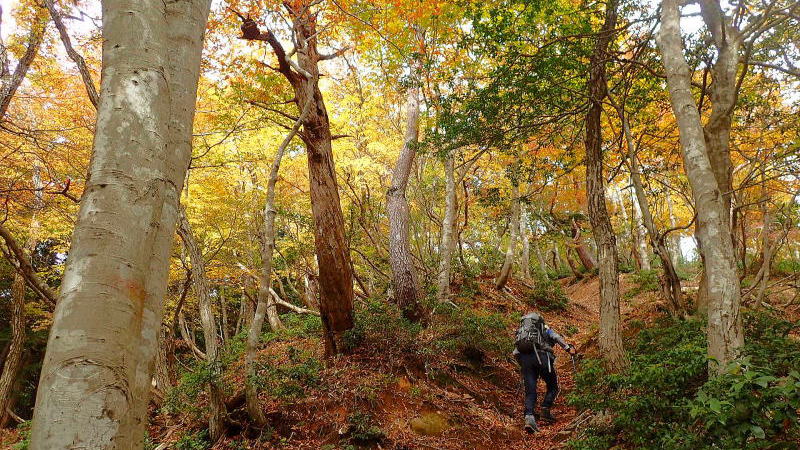 | この辺りから黄葉の色付きが鮮やかさを増して来た。 | |