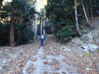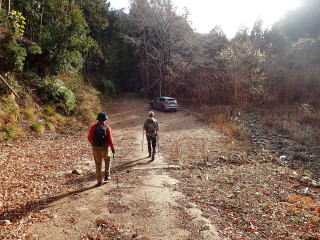 | 同行者は、IM君とFM君。 9時30分:駐車場を出発し、林道を少し歩く。 標高は約300m地点。 |