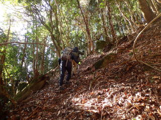 | 山頂直下の急登がこの山一番の傾斜で、横歩きしなくては滑り落ちそうになるところだった。 | |