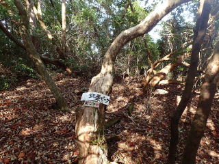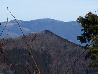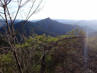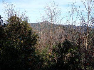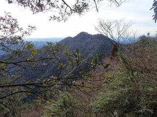 | 808m峰への登りになり、振り返ると樹々の間から山頂が見えていた。 | |