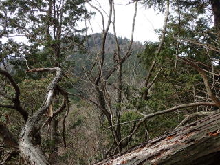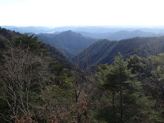 | 下りきると痩せ尾根になり、右側の眺望が開ける。 | |