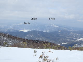 | 北西方向を見ると、皆ヶ山の後に大山がぼんやりとながら姿を現してくれた。 | |